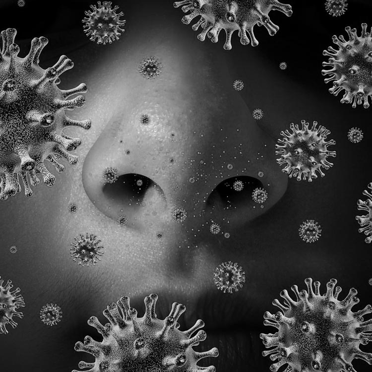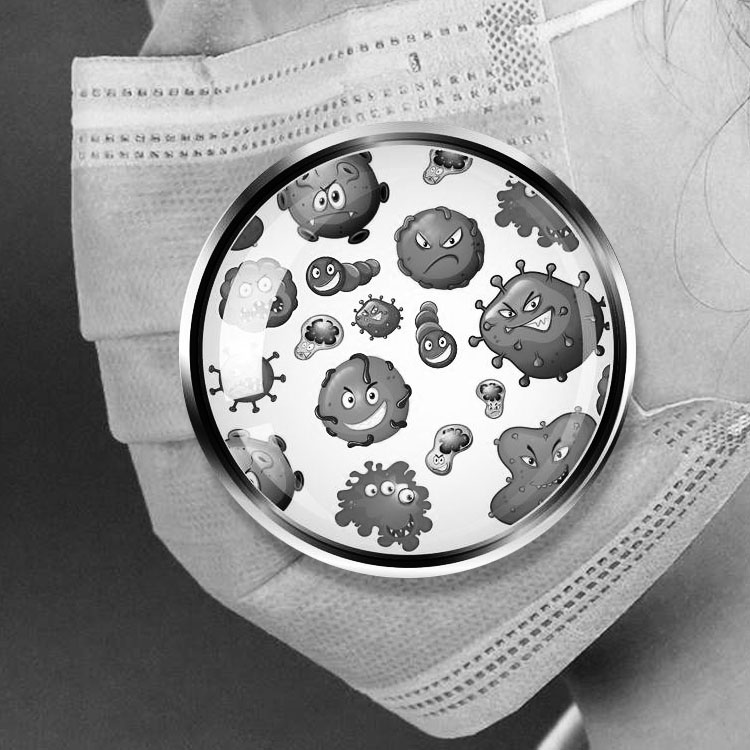 口罩表面或是纖維中依附著活體細菌。口罩戴了一定時間后由于呼吸會造成口罩濕度增加,會加大細菌存活率,會使細菌慢慢侵鼻腔膜和口腔膜壁上構成病癥。